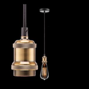230v 40W E27 Antique Brass L.H. 2 Core Black Fabric Cable Pendant