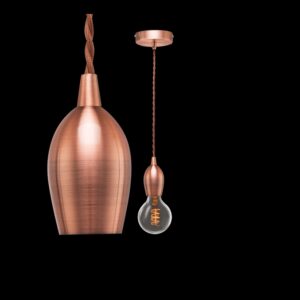230v 40W E27 Bullet Twisted Fabric Cord Pendant, Copper