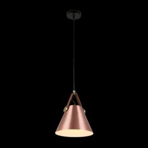 230v 40W E27 Large Leather & Iron Cone Metal Pendant, Copper