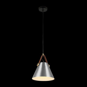 230v 40W E27 Large Leather & Iron Cone Metal Pendant, Brushed Aluminium