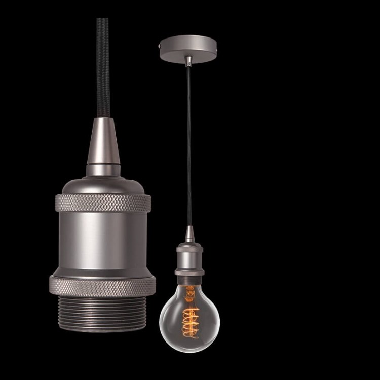 | Product Name: | 230v 40W E27 Matt Gun Metal L.H. 2 Core Black Fabric Cable Pendant |