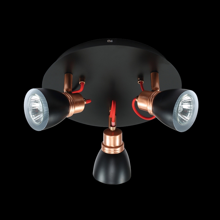| Product Name: | 230v 50W GU10 Three Adjustable Black & Copper Spot Lights on a Plate |